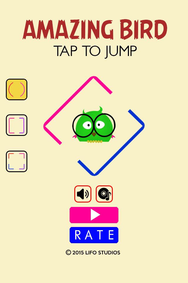 点击屏幕,让Amazing Bird ,永远不要与圆形和正方形接触。